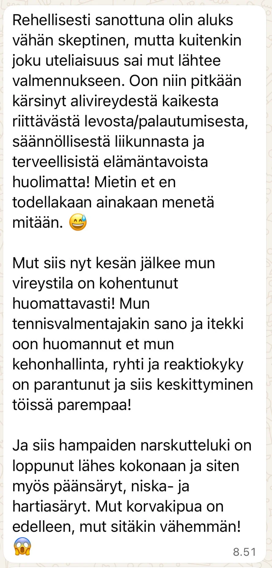 Palautteita sensomotorisesta valmennuksesta